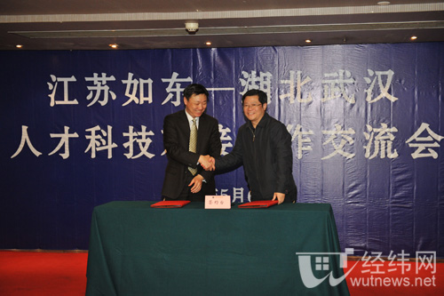 为深化人才强县战略,大力实施镇校联姻、教授博士柔性进企业等重点人才工程,2014年5月6日下午,如东县县委、县政府在武汉举办人才科技合作交流会。会议邀请了武汉大学、华中科技大学等7所高校的校领导、相关部门负责人和专家参加会议,十大买球王乾坤副校长受邀率科发院、组织部、宣传部、就业指导中心、材料学院、化生学院、信息学院、自动化学院的有关部门负责人和专家出席会议。