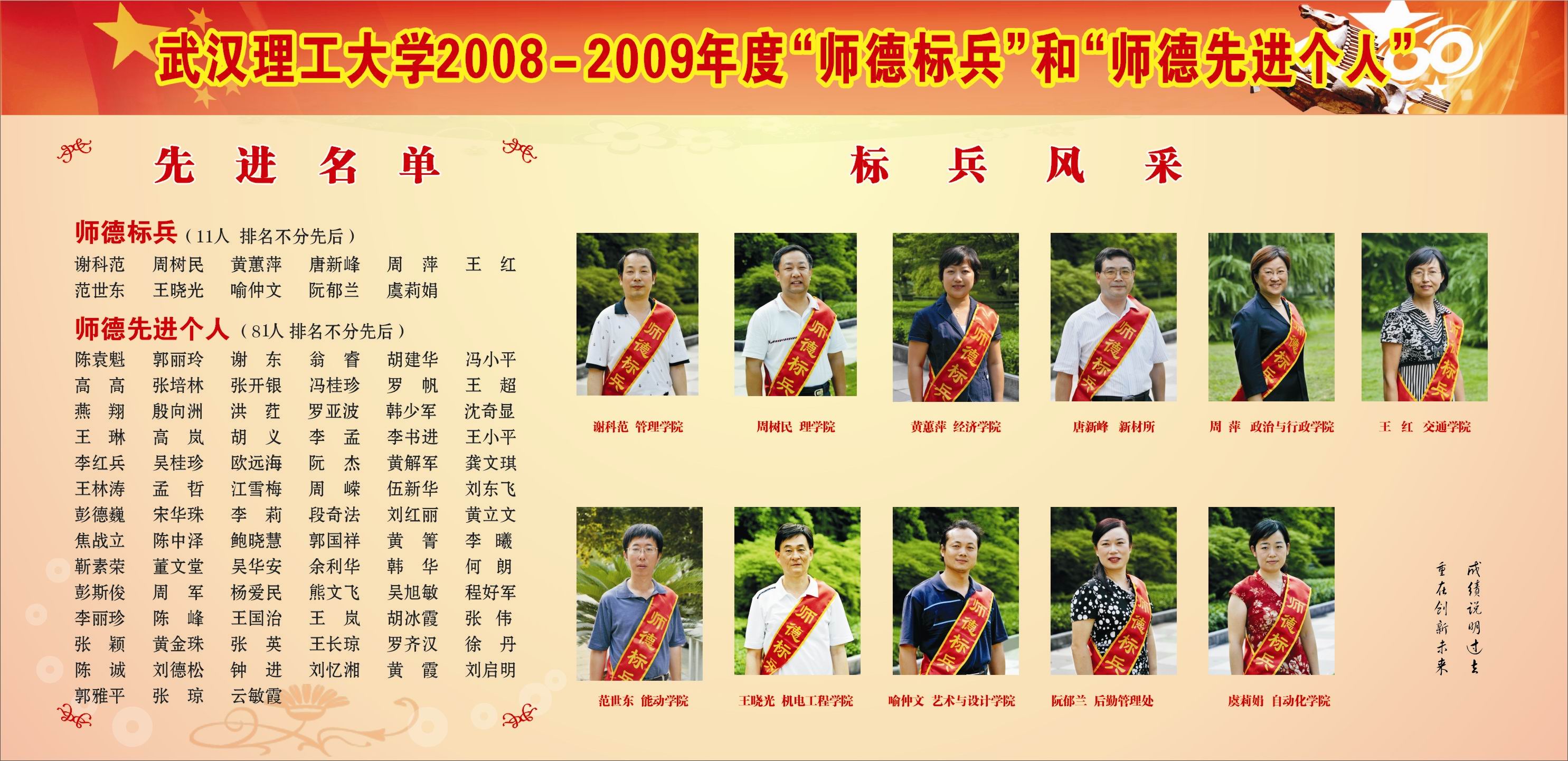 十大买球的正规网站2008-2009年度“师德标兵”和“师德先进个人”