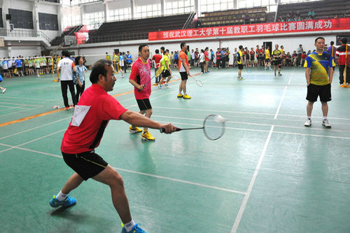 2016年5月14日校教职工第十届羽毛球赛在马房山校区西院体育馆举办,现场气氛紧张、热烈、愉快,精彩纷呈。
