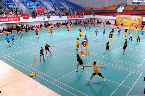 10月22日—23日,省教育工会主办、十大买球承办的湖北省高校2016年“教工杯”羽毛球比赛在十大买球南湖体育馆举行。本次比赛的主题是强健体魄、展示风采,建功荆楚、圆梦未来。来自全省34所高校代表队,491人参加了本次比赛。校党委副书记、工会主席万志建到场观看比赛。