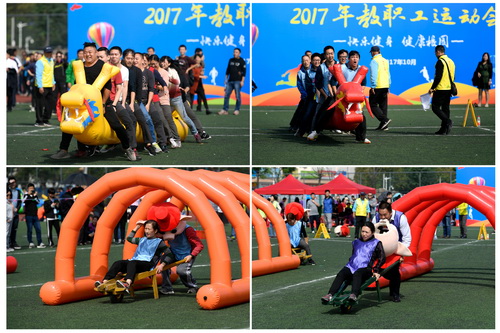 此次教职工运动会以“快乐健身 健康校园”为主题,通过精心设计,分为田径比赛项目和趣味体育竞赛项目两大板块,既体现运动会的竞技性和团队性,又运用大型体育设施,吸引广大教职工广泛参与,体现了竞技性、创新性和趣味性。田径比赛项目中按年龄进行分组,设有个人100米、800米和1500米三项田径项目和4*100米、10*50米男女混合接力田径项目,趣味体育竞赛项目设有陆地龙舟、龟兔赛跑聪明八戒奋进小鸟4个团体项目和趣味投篮、趣味高尔夫、趣味保龄球、愤怒的小鸟、九宫射门、红心大战6个个人项目。在本次的运动会中,工会推进“互联网+”建设利用网络平台,对个人趣味项目比赛进行了现场扫码报名。比赛中,各代表队运动员团结协作、顽强拼搏,充分展现了理工大人积极向上的精神风貌。赛场上,掌声、笑声、助威声此起彼伏。此次教职工趣味运动会,受到领导和教职工们的好评,教职工们从中感受到了体育的魅力,进一步增强了集体凝聚力,提高了教职工的参与意识,培养了团队精神。