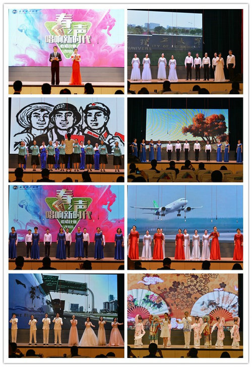 比赛以习近平新时代中国特色社会主义思想为指导,深入贯彻党的十九大精神,努力展现新时代主题,唱响时代乐章,弘扬正能量,精心策划、组织了以“唱响新时代”为主题的歌唱比赛。比赛中,各演唱队伍的演唱形式多样,演唱风格各异,从经典老歌到时尚热曲,从通俗民谣到京剧联唱,师生们的倾情演唱博得了观众的阵阵掌声,比赛精彩纷呈,高潮迭起。