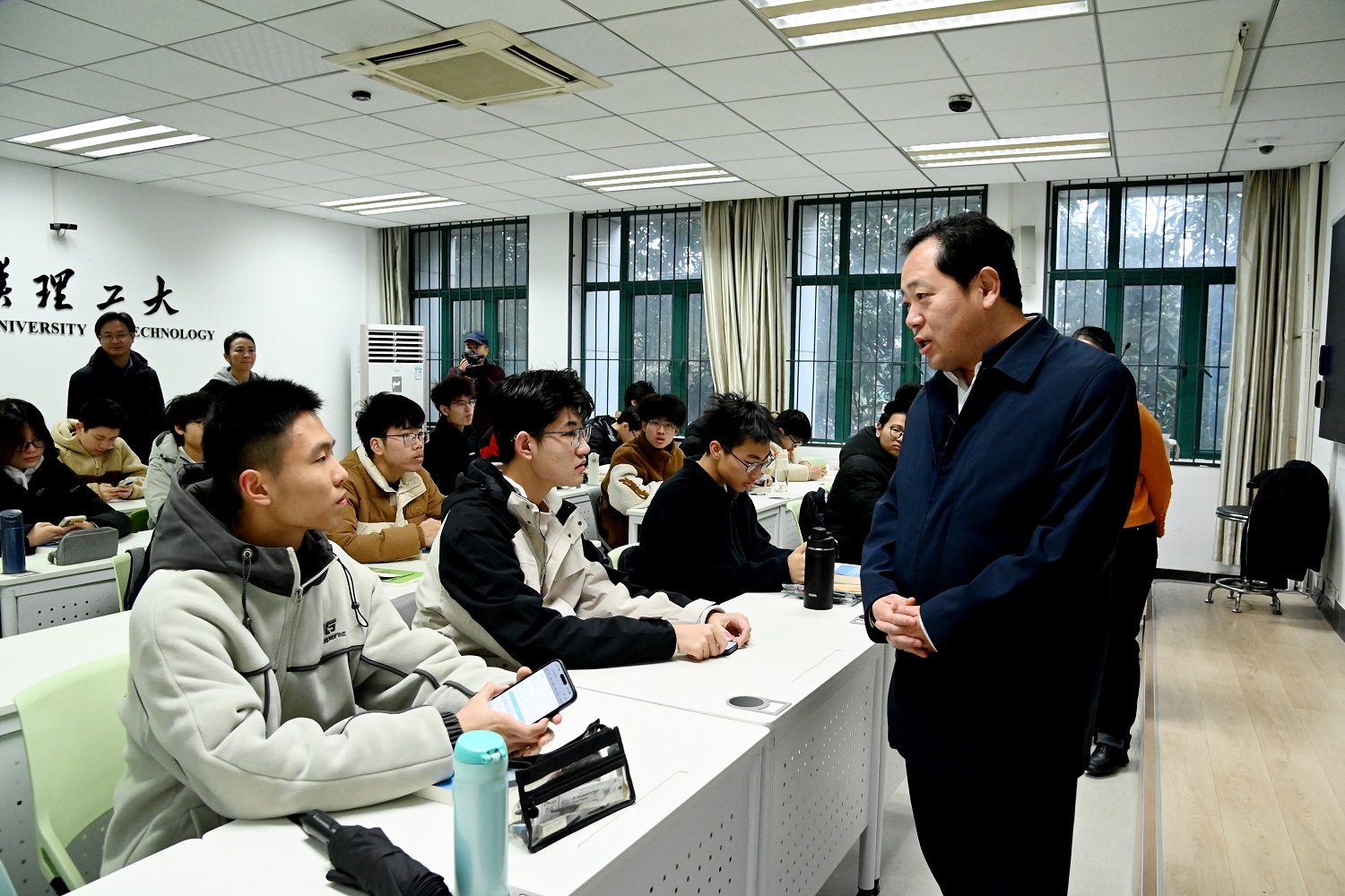 “寒假过得如何?”“新学期有什么目标?”校党委书记孟芳兵、校长王发洲、校党委副书记李潮欣、副校长李政颖走进课堂,深入教学一线,全面了解开学第一天教学运行和服务保障等情况,并与师生亲切交流,勉励大家踔厉奋发、笃行不怠。