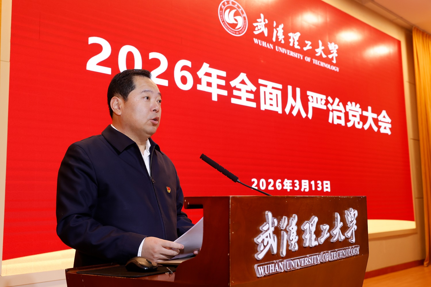 新闻网讯 3月13日上午,学校召开2026年全面从严治党大会,认真学习贯彻党中央和上级党组织关于全面从严治党的新要求新部署,回顾总结2025年学校全面从严治党工作,部署安排2026年管党治党重点任务。全体校领导,校党委委员、纪委委员,各二级单位领导班子成员参加大会。会议由校党委副书记刘春江主持。