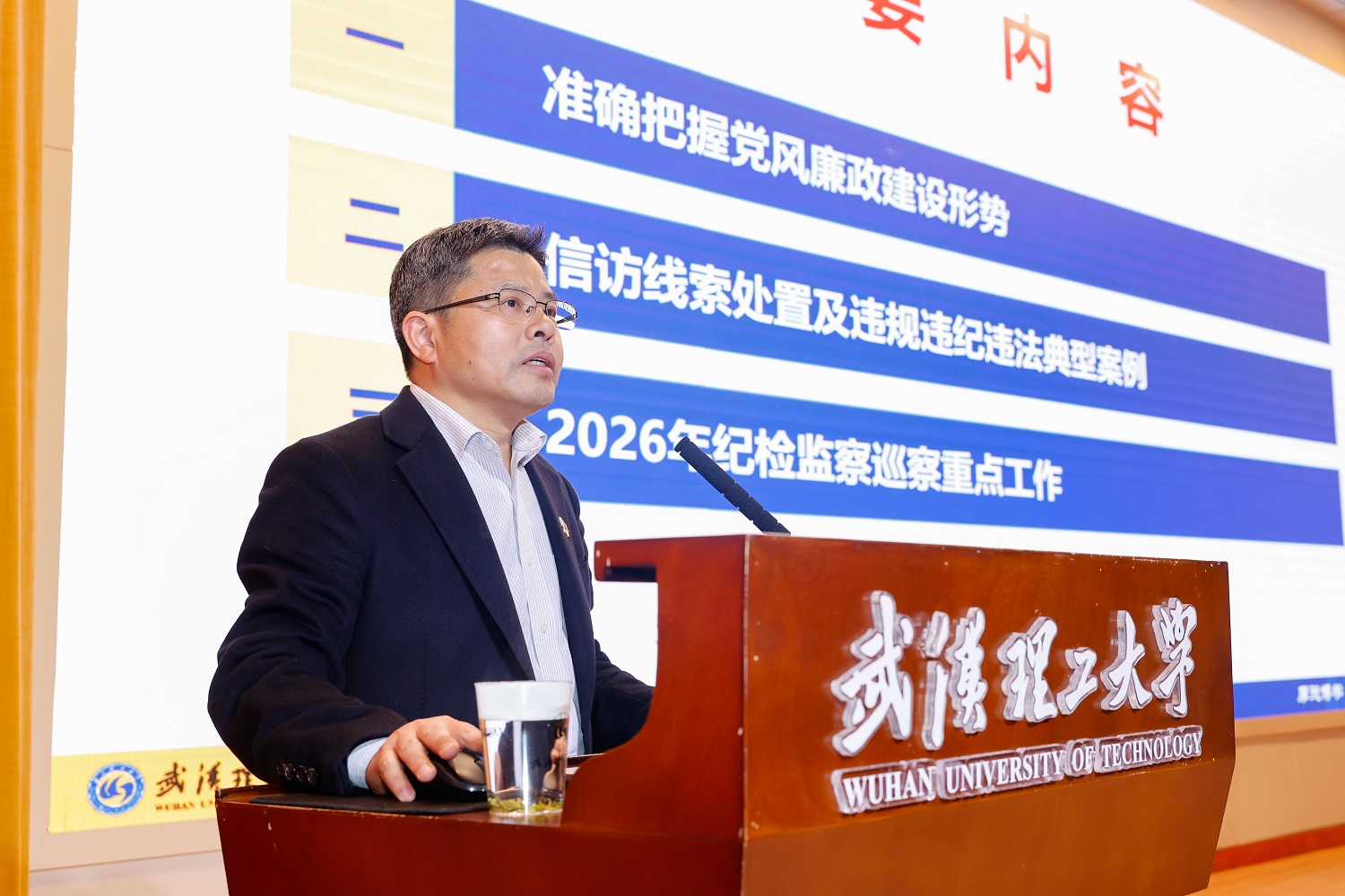 校党委副书记、纪委书记李金发聚焦教育领域态势和纪委监督执纪、查信办案中发现的问题,系统分析了学校当前党风廉政建设面临的形势任务,点名道姓通报违规违纪违法典型。他从突出政治引领,在强化政治监督上展现新担当;坚持久久为功,在深化作风建设上取得新成效;深化标本兼治,在一体推进“三不腐”上迈上新台阶;强化贯通协同,在汇聚监督合力上构建新格局;聚焦能力提升,在锻造纪律铁军上呈现新面貌等五个方面布置了2026年度纪检监察巡察重点工作。